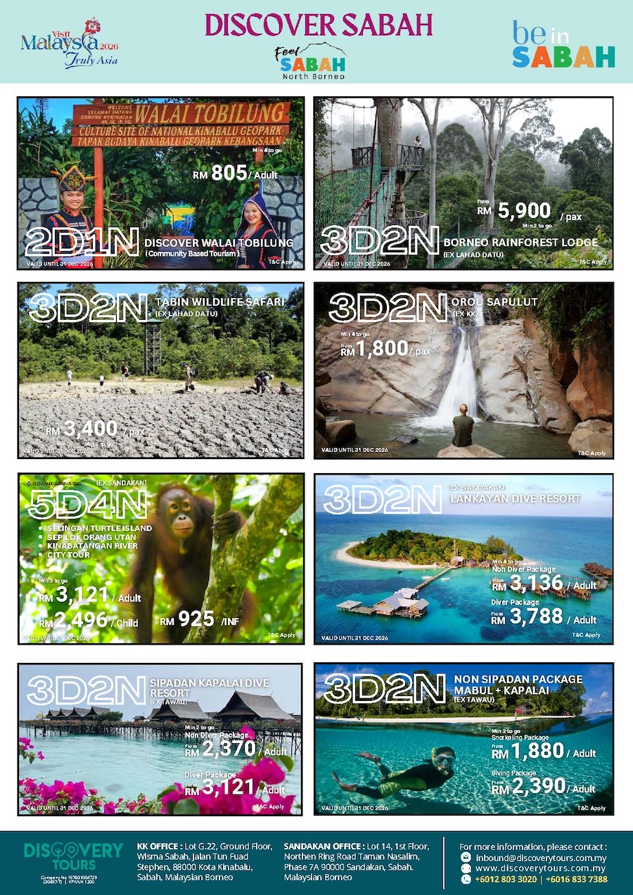 Enhance your BE in SABAH 2025 experience by exploring the incredible beauty Sabah has to offer through self-arranged pre and post tours with our official travel partner. From the iconic Mount Kinabalu to idyllic islands, lush rainforests, and vibrant cultural heritage, Sabah promises a journey unlike any other. Whether you’re seeking adventure, relaxation, or cultural exploration, our partner can help you craft the perfect itinerary. Don’t miss the chance to make your trip truly unforgettable—no visit to Sabah is complete without discovering its breathtaking wonders.